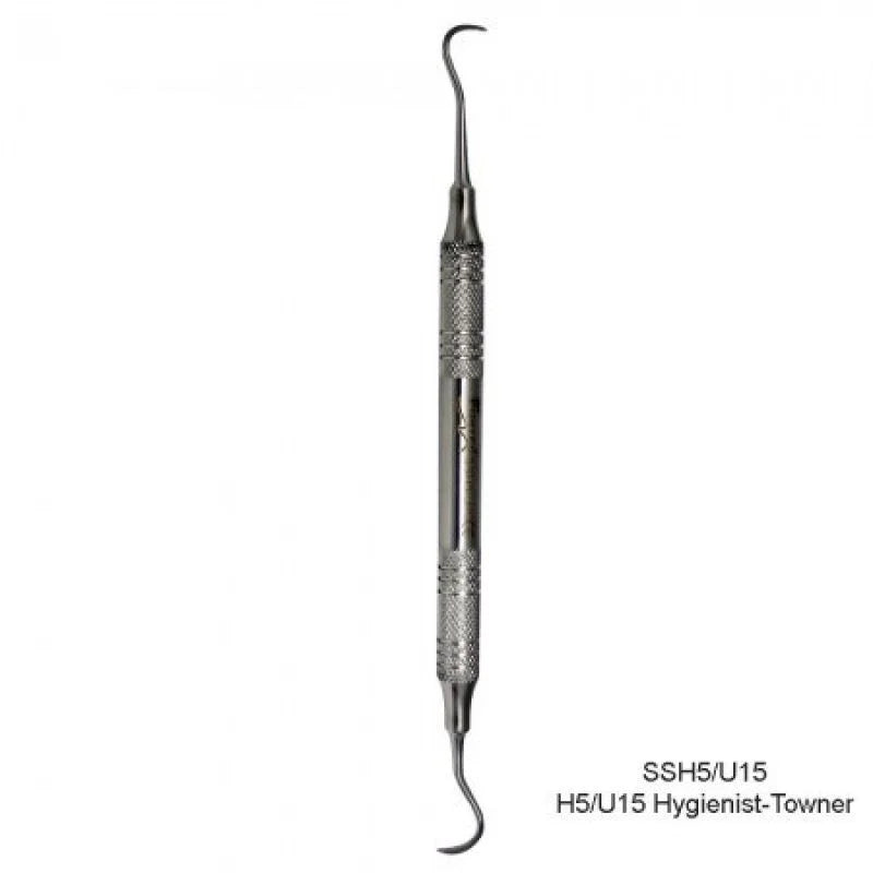 Sickle Scaler H5/U15 Hygienist-Towner – (Handle #4) – Used to remove calculus above and below the gum line.